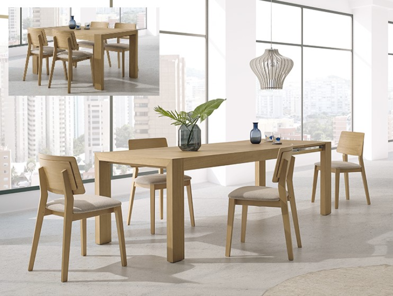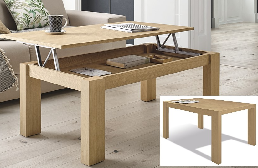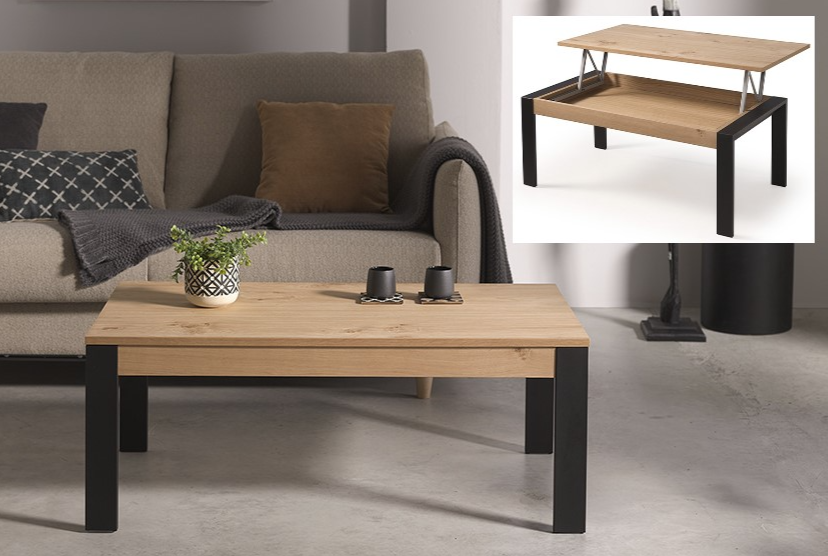- Mesa de centro elevable de madera con acabado en melamina o chapa natural de haya o roble