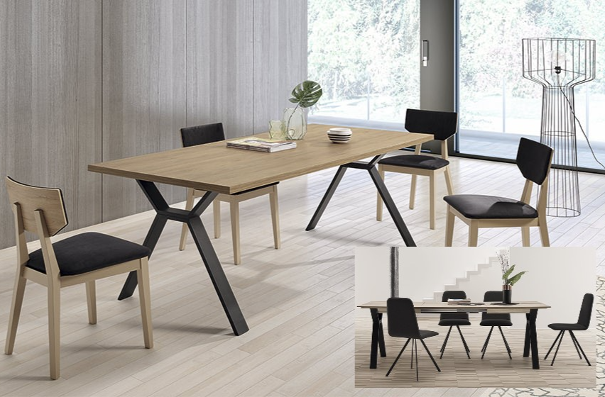 - Mesa de diseño vanguardista, estructura metálica, combinada con un sobre de tablero