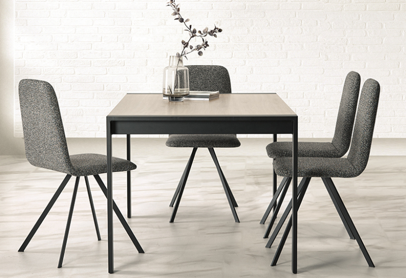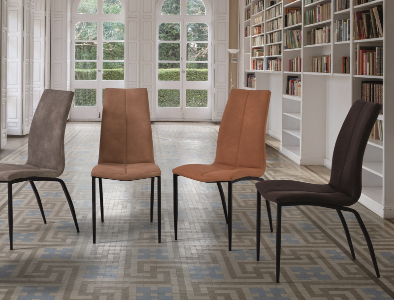 - Silla tapizada, con patas metálicas acabado en color negro