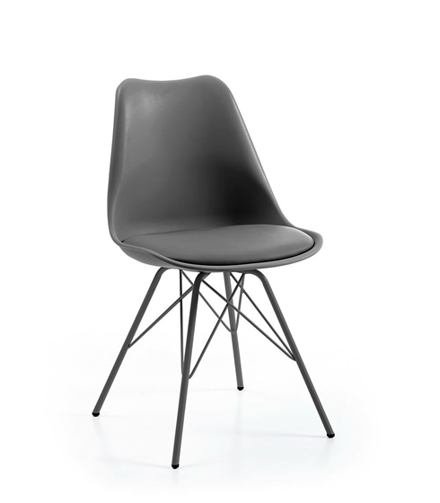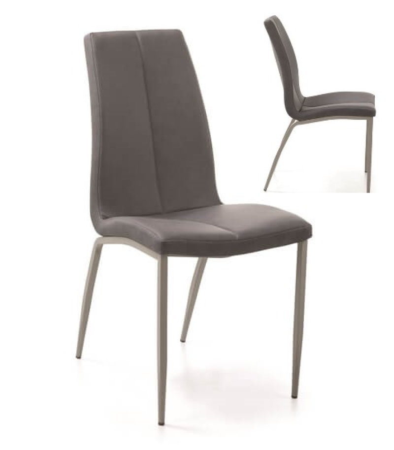 - Moderna silla con diseño asimétrico, tapizada en piel sintética Visón, con patas de Hierro pintado en color Antracita