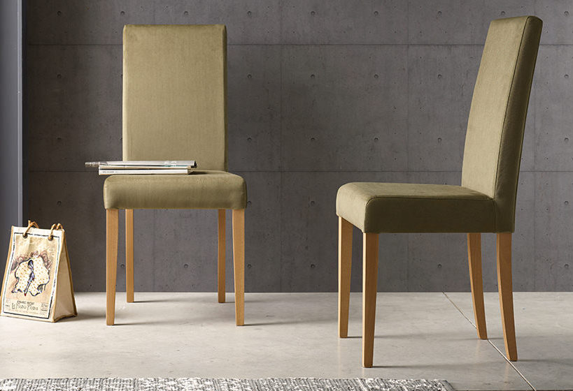 - Silla de madera de haya, con asiento y respaldo tapizados