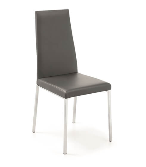 - Silla tapizada en piel sintética con patas cromadas