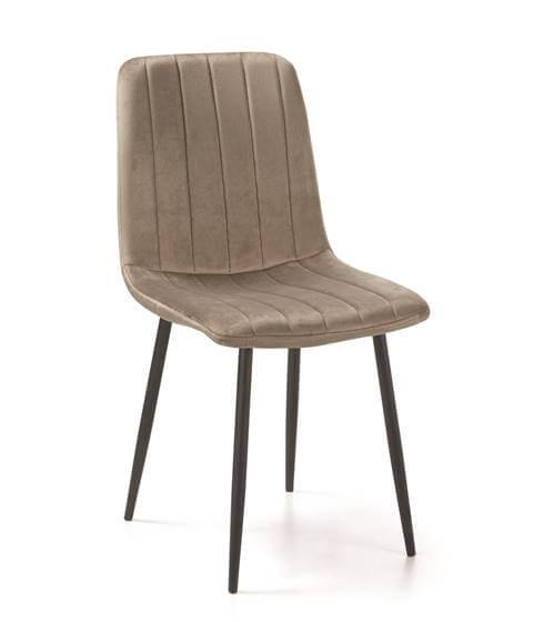 - Elegante silla de comedor tapizada en tela velvet, patas metálicas en color negro